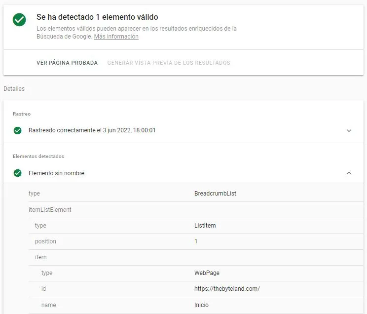 Existen diferentes tipos de estructuras de datos dentro del estándar, pero en este caso vamos a utilizar el de BreadcrumbList, que podemos encontrar documentado con todos sus atributos en https://schema.org/BreadcrumbList.